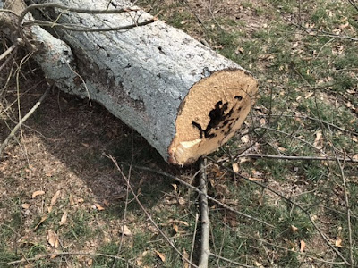 I went up to watch them come down, and see if maybe I could save a little of the wood for my dad. I have never seen sick trees come down before. When the top most part came off it was so rotten that it turned into this as it hit the ground.